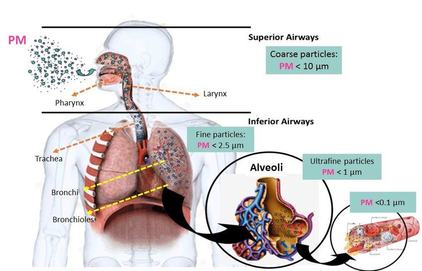 *อนุภาคที่มีขนาดเล็กกว่า 10 µm จะสามารถสะสมอยู่ในปอดและกระจายตัวเข้าสู่กระแสเลือด (อ้างอิงจาก US EPA)