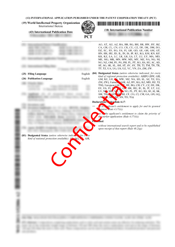 ![]() ใบรับรองสิทธิบัตรระดับสากล |