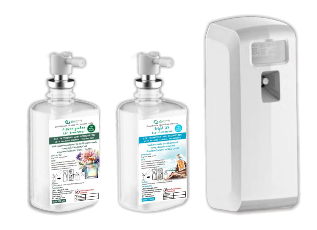 ผลิตภัณฑ์เครื่องพ่นน้ำหอมห้องน้ำ Green Family เป็นนวัตกรรมใหม่ที่ได้รับการออกแบบมาโดยเฉพาะ เพื่อแก้ไขปัญหากลิ่นรบกวน ปรับอากาศในบริเวณต่างๆ เช่น ห้องน้ำ โถสุขภัณฑ์ ท่อระบายน้ำ บริเวณที่พักขยะ รวมไปถึงกลิ่นจากสิ่งขับถ่ายของสัตว์เลี้ยง ด้วยคุณสมบัติดังต่อไปนี้